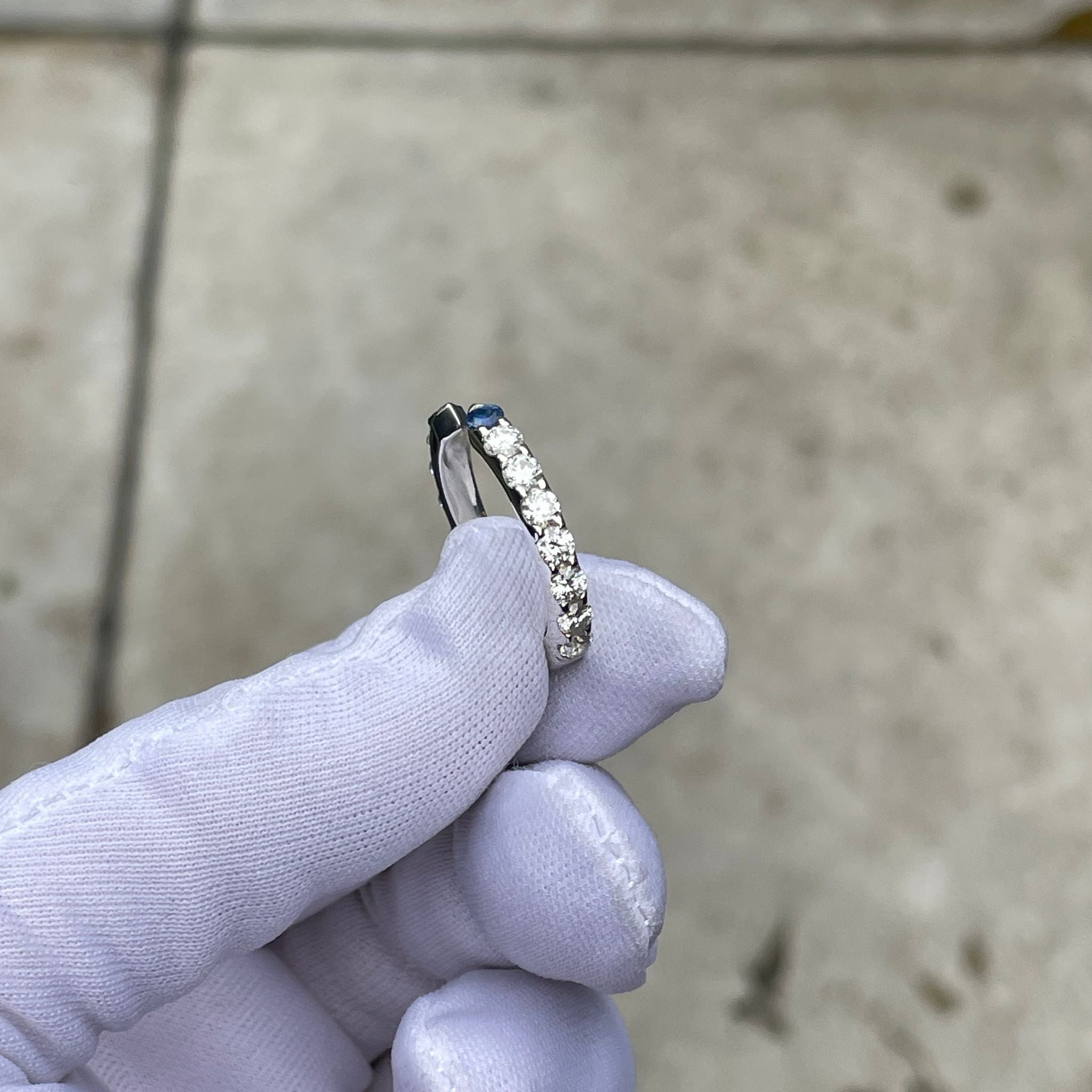 The Signature Eternity Ring, handcrafted from start to finish using 925 silver & featuring a set row of 1.4ct of lab grown diamonds with a modern open design, finished with two vibrant sapphire accents.