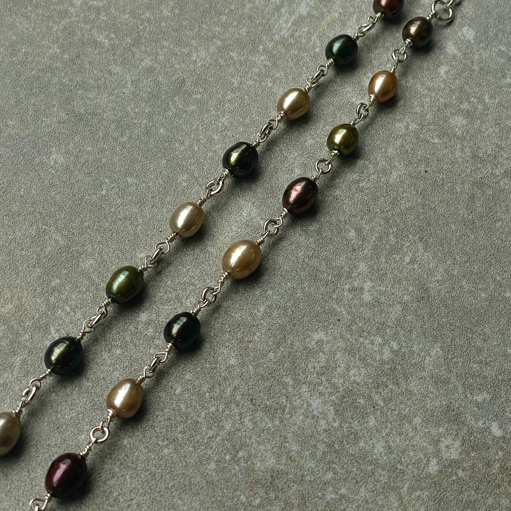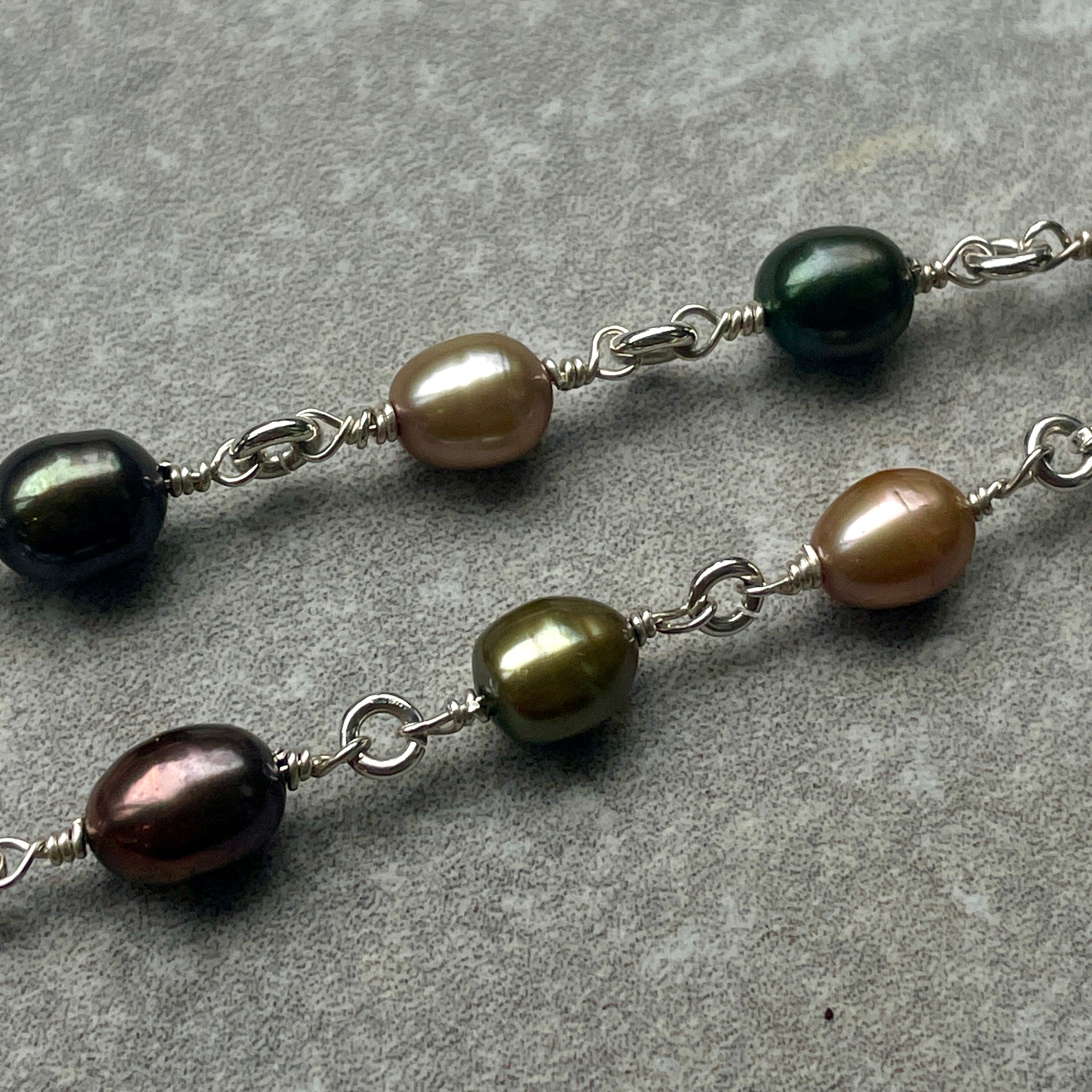 msde from 925 silver and earth toned fresh water pearls, this bracelet was handmade from start to finish.